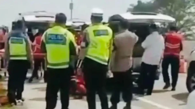 Peristiwa ini terjadi pada Kamis 11 Desember 2025 pagi, tepatnya di KM 284+800 arah Semarang, wilayah Desa Karangjati, Kecamatan Tarub, Kabupaten Tegal.