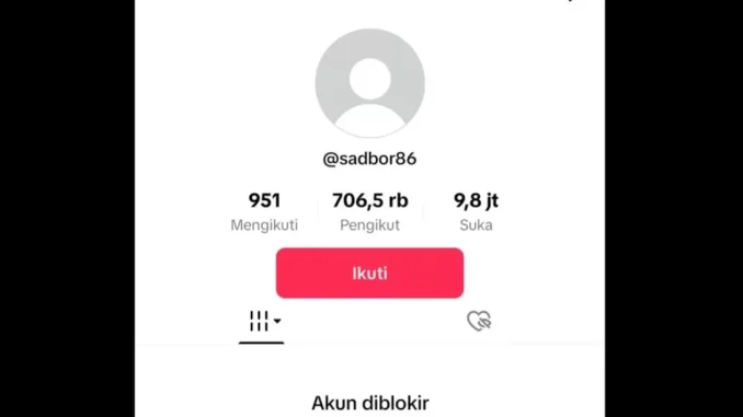 Akun TikTok Gunawan Sadbor @sadbor86 dengan pengikut 706,5 ribu dam 9,8 juta menyukainya itu telah diblokir, buntut promosikan judi online.