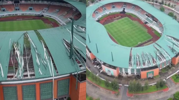 Ia menambahkan bahwa kerusakan paling parah terjadi di Stadion Pakansari, terutama pada bagian atap di sisi utara yang mengalami kerusakan cukup serius.