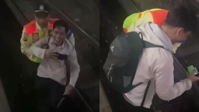 Pria tersebut terlalu fokus menonton hingga tidak memperhatikan jalan dan terjatuh ke celah peron. Alih-alih kesakitan, pria tersebut justru tertawa. Bahkan, dua temannya juga ikut menertawai tingkah pria tersebut.