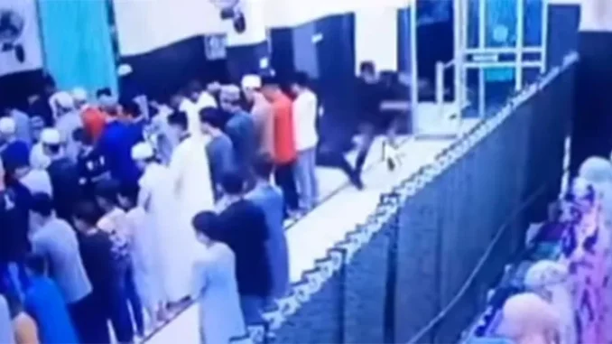Dalam video yang beredar di media sosial, mulanya terlihat seorang pelaku berbaju hitam masuk ke dalam masjid. Ia kemudian menarik paksa korban yang saat itu salat di shaf belakang.