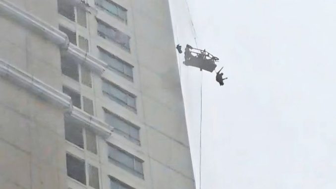 Dari informasi di lapangan, diketahui bahwa awalnya terdapat dua gondola yang digunakan untuk pekerjaan pembersihan di bagian luar gedung. Gondola pertama berhasil turun hingga lantai dasar sebelum kondisi cuaca memburuk.