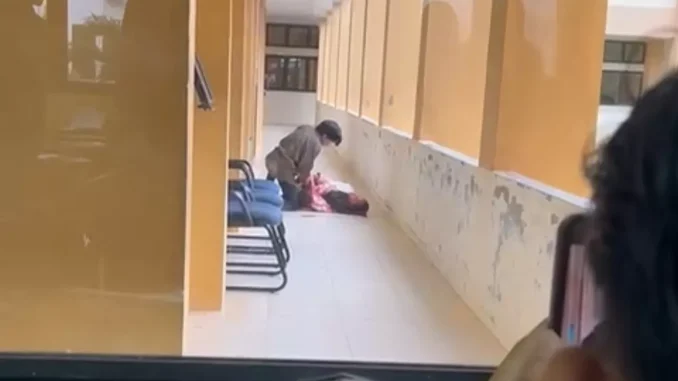 Berdasarkan video yang beredar, terlihat pelaku menahan korban yang mengenakan pakaian putih dan sudah berlumuran darah. Mahasiswa lain tidak berani mendekat lantaran pelaku mengancam dengan mengacungkan parang.