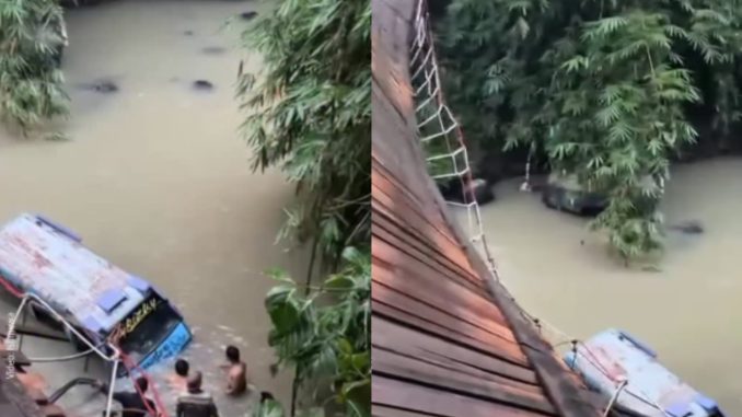 Peristiwa ini diduga terjadi karena kendaraan membawa muatan penumpang melebihi kapasitas, ditambah kondisi jembatan yang sudah tidak cukup kuat menahan beban kendaraan roda empat dengan muatan penuh.