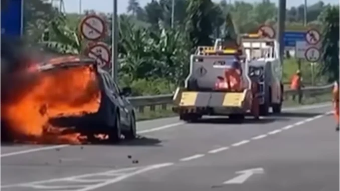 Saat memasuki Gerbang Tol Belahanrejo, Erik mendengar letupan kecil. Ia segera menghentikan mobil dan keluar untuk menyelamatkan diri. Beberapa saat setelah itu, api dengan cepat membesar dan melalap seluruh bagian kendaraan.