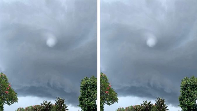 Sebelum angin kencang itu datang, warga sudah dibuat panik oleh kemunculan pusaran angin besar di langit.