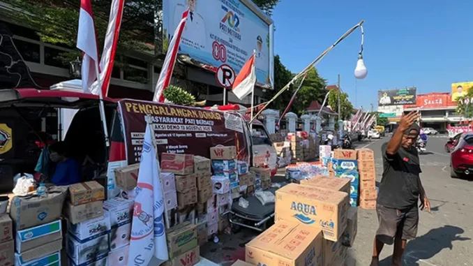 Pada Kamis malam, 8 Agustus 2025, halaman depan Kantor DPRD Pati dipadati ratusan warga yang bergotong royong menyumbangkan air mineral untuk mendukung peserta aksi. Suasana malam itu lebih mirip pasar amal daripada area perkantoran, dengan tumpukan kardus air mineral menggunung hingga mendekati tepi jalan.
