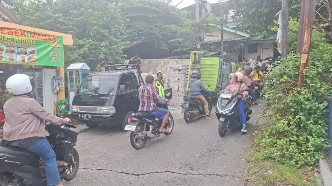 Kecelakaan lalu lintas kembali terjadi di Depok pada Jumat (30/1/2026). Insiden kali ini melibatkan sebuah truk bermuatan hebel.