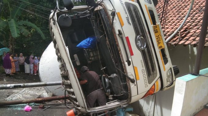 Truk Tangki Terguling Timpa Balai RT di Banyumas