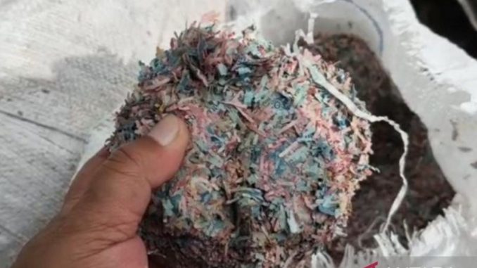 “Saat ini kami mengamankan sekitar 21 karung berisi cacahan kertas yang diduga merupakan potongan uang pecahan Rp100 ribu, Rp50 ribu, dan Rp2 ribu,” katanya.