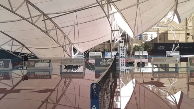 Sebuah lapangan padel di kawasan Meruya, Jakarta Barat, ambruk setelah diterpa angin kencang disertai hujan deras pada Minggu siang (26/10/2025). Kejadian berlangsung cepat dan membuat pengunjung panik berteriak serta berlarian menyelamatkan diri dari lokasi kejadian.