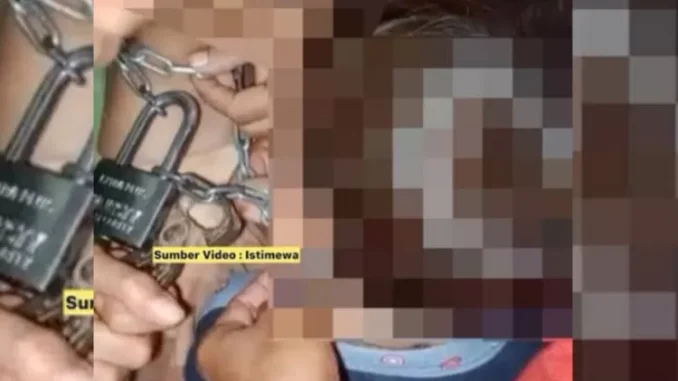 Sebuah video memilukan di media sosial memperlihatkan dua bocah dirantai di lehernya yang diduga dilakukan oleh ayah kandung mereka.