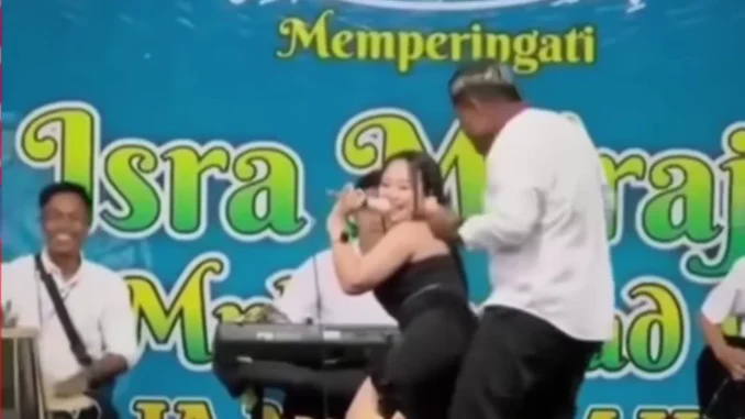 Sebuah rekaman video yang menampilkan aksi seorang biduan dengan pakaian terbuka saat acara peringatan Isra Miraj di Banyuwangi, Jawa Timur, mendadak ramai diperbincangkan di media sosial.