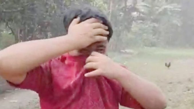 Viral video memperlihatkan warga Citeureup Kabupaten Bogor yang tengah menggelar kegiatan memperingati HUT Kemerdekaan RI di lapangan terbuka geger oleh kemunculan hujan semen, Kamis (14/8/2025) siang.