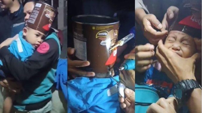 Seorang balita perempuan berusia 2,5 tahun mengalami kejadian tidak biasa saat bermain di rumahnya. Kepalanya terjepit kaleng biskuit bekas setelah mencoba memasukkannya ke kepala, diduga karena rasa ingin tahu dan bermain tanpa pengawasan langsung dari orang tua.