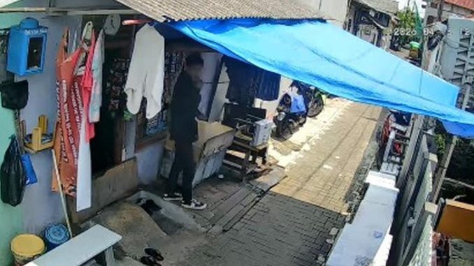 Pelaku tampak santai saat beraksi. Sambil merokok, pelaku masuk ke rumah warga yang terbuka dan langsung mengambil HP korban.