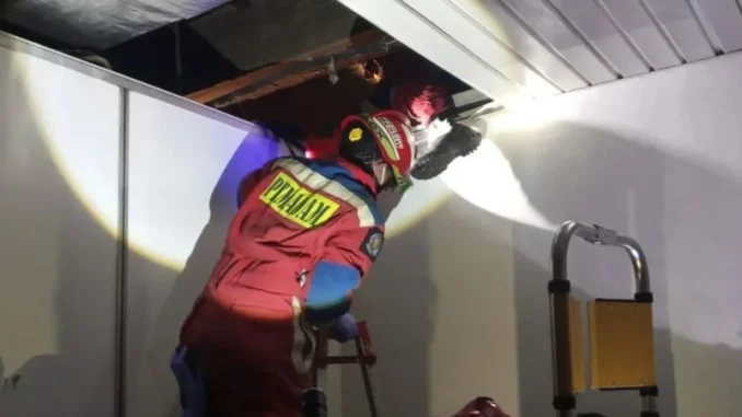 “Tim kami langsung menuju lokasi dan menemukan jenazah pria dalam posisi telentang di atas plafon gedung, mengenakan kaos kuning dan celana panjang biru. Wajah korban tampak menghitam,” kata Dwi saat dikonfirmasi.