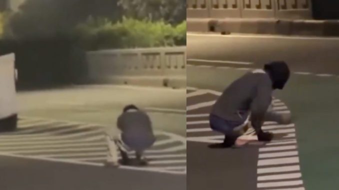 Aksi tersebut berlangsung cukup lama. Beberapa kendaraan tampak melintas di dekat lokasi tanpa menyadari aktivitas yang sedang dilakukan pelaku.