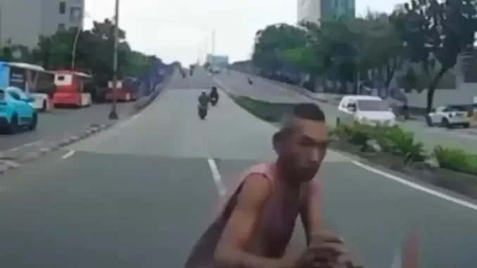 Aksi itu sempat menarik perhatian sejumlah pengemudi ojek online (ojol) yang berhenti untuk memeriksa keadaan. Tak lama kemudian, pria tersebut bangkit dan berjalan ke pinggir jalan seolah tidak terjadi apa-apa.