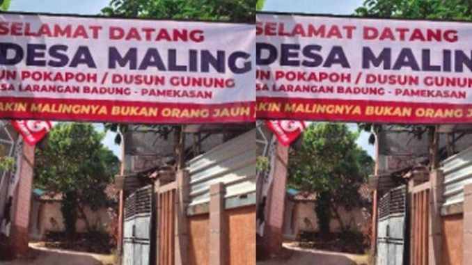 Sebuah spanduk bertuliskan sindiran keras “Selamat Datang di Desa Maling” mendadak viral dan menghebohkan warga Kabupaten Pamekasan, Jawa Timur.