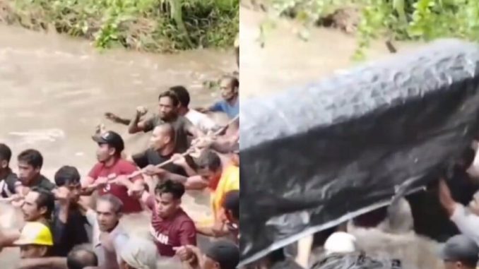 Video yang diunggah oleh akun TikTok @pardidu.tabalai pada Selasa (13/1/2026) memperlihatkan sejumlah pria bergotong royong mengangkat keranda berisi jenazah sambil melawan kuatnya aliran sungai. Beberapa warga terlihat berpegangan pada tali yang diikatkan ke pohon kelapa di tepi sungai untuk menjaga keseimbangan saat menyeberang.
